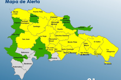 Santo Domingo.– El Centro de Operaciones de Emergencias (COE), informó este jueves el aumento del nivel de alerta meteorológica en gran parte del territorio nacional, colocando a 20 provincias y el Di...