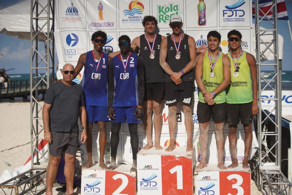 Los estadounidenses James Drost y Troy Field derrotaron a la dupla cubana Damián Gómez y Eblis Veranes en un emocionante partido de tres sets 2-1 (19-21, 21-18, 15-10) para ganar la medalla de oro en la novena etapa del Tour Continental Norceca de Voleibol de Playa, que concluyó recientemente en Punta Cana, República Dominicana.