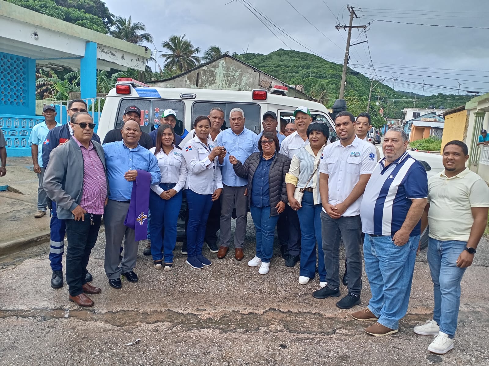 La nueva ambulancia entregada en Enriquillo contó con la bendición del diácono de la Parroquia Santa Ana, Gilmer Bertulio Heredia y con la presencia de la doctora Ilsa Pineda quien es la encargada de gestión de la Dirección de Servicios de Atención a Emergencias Extrahospitalarias (DAEH).