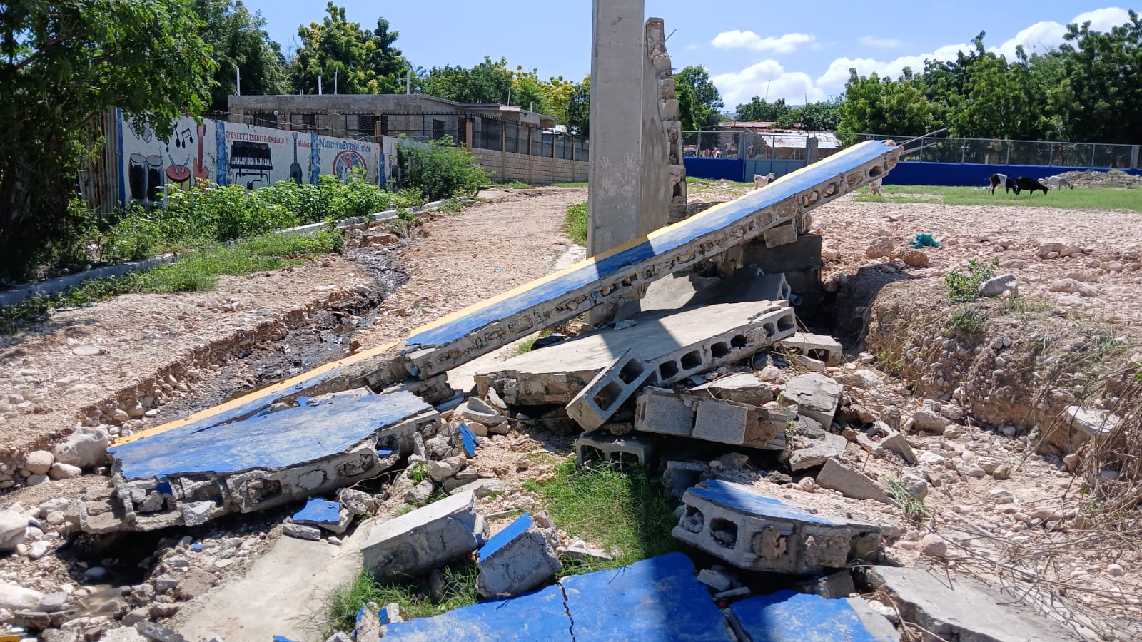 EL NUEVO DIARIO, VILLA CENTRAL, BARAHONA.– Las torrenciales lluvias registradas el domingo, provocadas por el paso de una onda tropical ocasionaron el desplome de la pared del play de béisbol Duarte ubicado en el municipio de Villa Central, provincia Barahona.