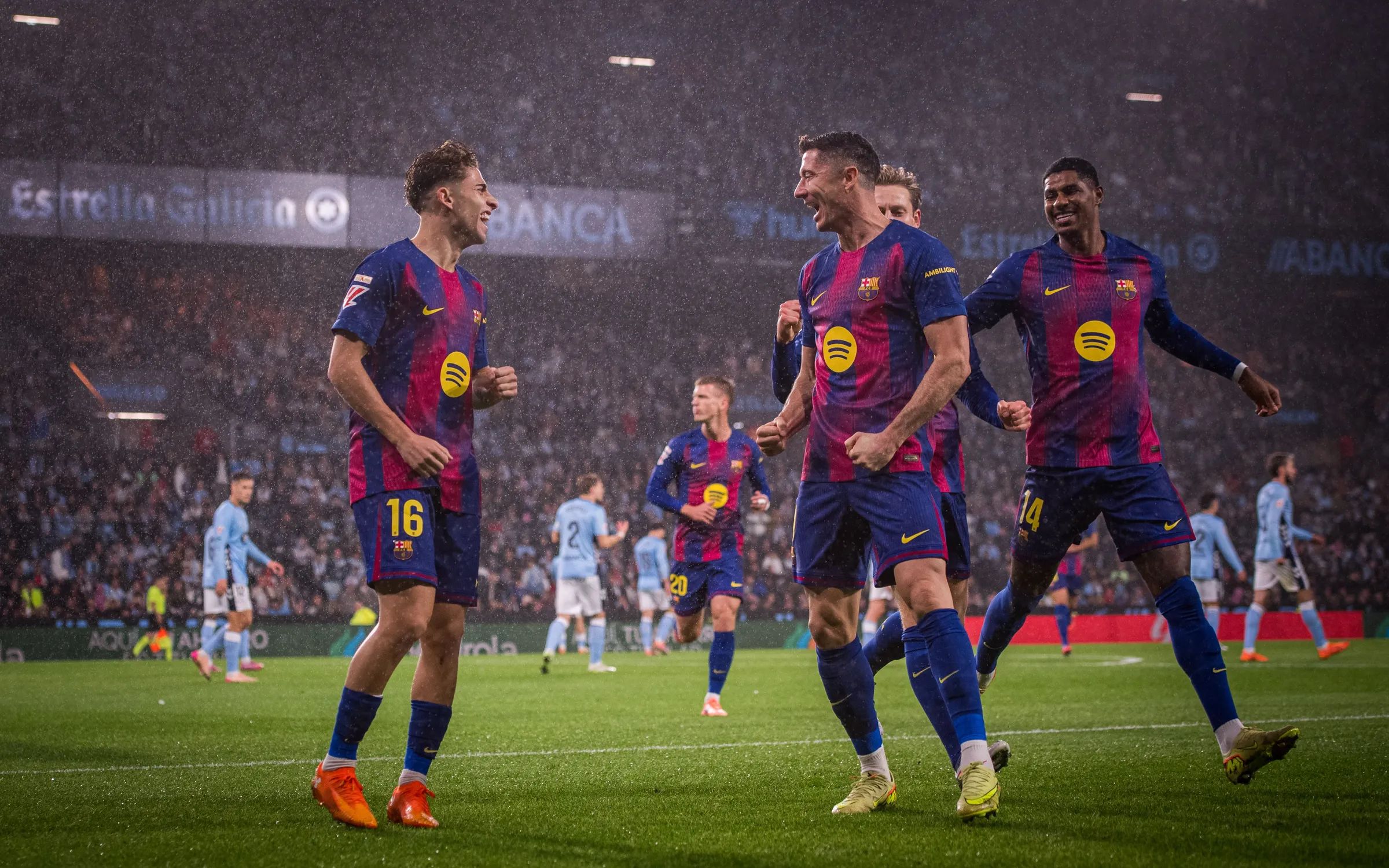 El plan inicial de Hansi Flick se alteró en el calentamiento con la baja de Casadó. Fue el único contratiempo en una lluviosa noche iluminada por un primer tiempo brillante, trepidante, de ritmo alto, con numerosas ocasiones de dos equipos verticales. Balaídos presenció un delicioso espectáculo futbolístico.