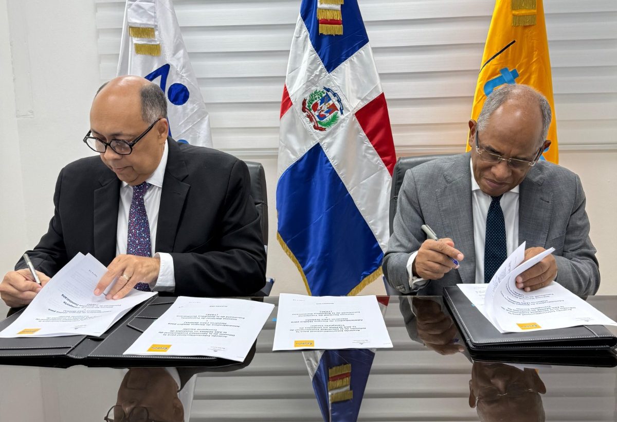 Luis René Canaán Rojas, director ejecutivo de ARS Semma, y Onésimo González, director del TRAE durante la firma del acuerdo (Foto: Prensa ARS Semma)