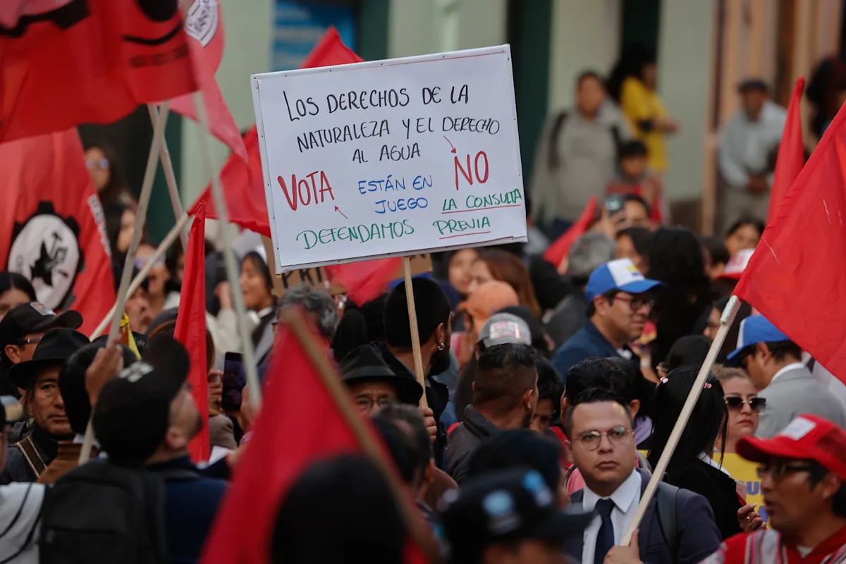 La marcha tuvo lugar a cuatro días del referéndum convocado por el presidente Daniel Noboa, en el que se decidirá, entre otros puntos, si se instala una Asamblea Constituyente para redactar una nueva Constitución y si se vuelve a permitir la presencia de bases militares extranjeras en el país.