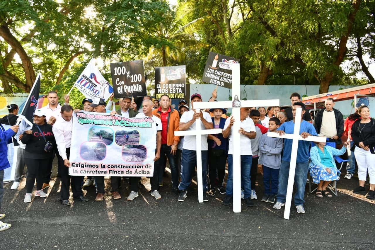 EL NUEVO DIARIO, SANTIAGO.- Con pancartas en manos «Los choferes también somos pueblo», peregrinos iniciaron marcha este lunes desde Hato del Yaque en Santiago hasta el Palacio Nacional en Santo Domingo, exigiendo al Gobierno la terminación de la carretera que conecta varias comunidades agrícolas de la zona.