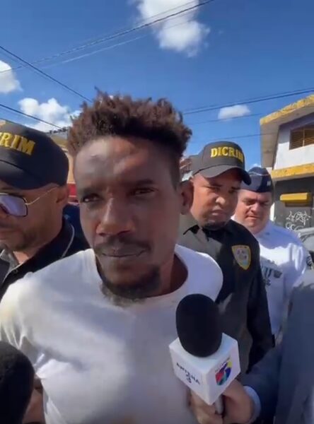 Un video ofrecido por la Policía muestran el momento en que agentes de la Dirección Central de Investigación (DICRIM), junto a personal de la Policía Preventiva, trasladan al detenido hasta el Destacamento Ensanche Felicidad, en Los Mina, donde permanece bajo custodia.