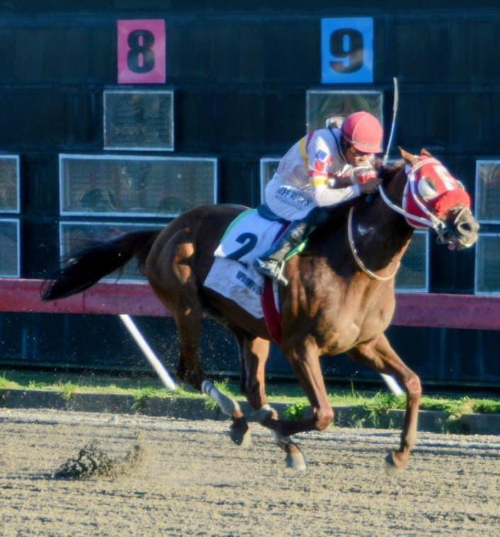 Team Captain (2), que tuvo ligeros problemas en la salida, se adueño del escenario en los 550 metros finales y paró el cronometro en 1:44:2/5 al llegar a la meta, en los 1,700 metros.