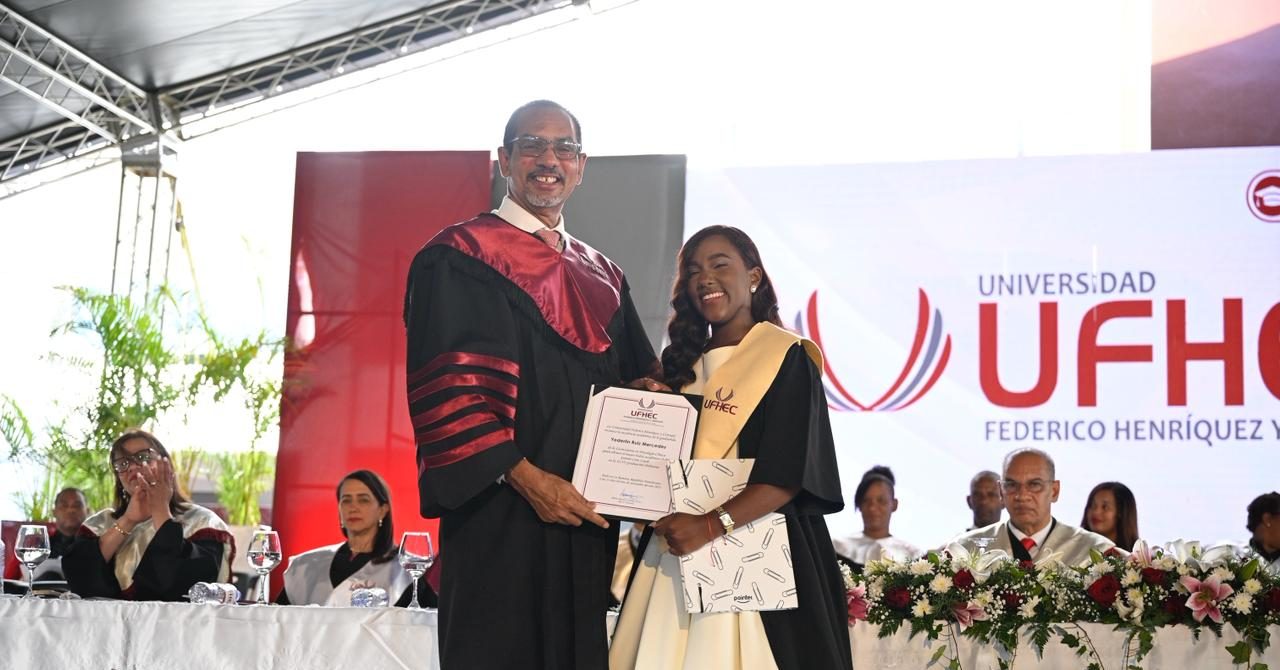 Durante la ceremonia, realizada en el Campus La Romana, el rector nacional de la Ufhec, Alberto Ramírez, resaltó el compromiso de la institución con la formación de talento humano capaz de transformar realidades, aportar soluciones innovadoras y elevar la competitividad del país.