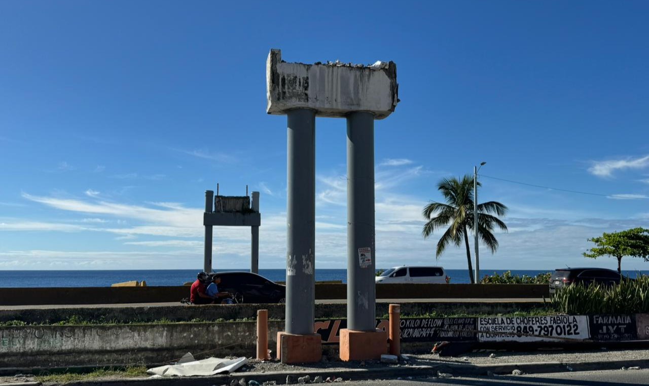 Columnas del puente peatonal en el kilómetro 10 de la autopista Las Américas (Foto: Félix Lara El Nuevo Diario)
