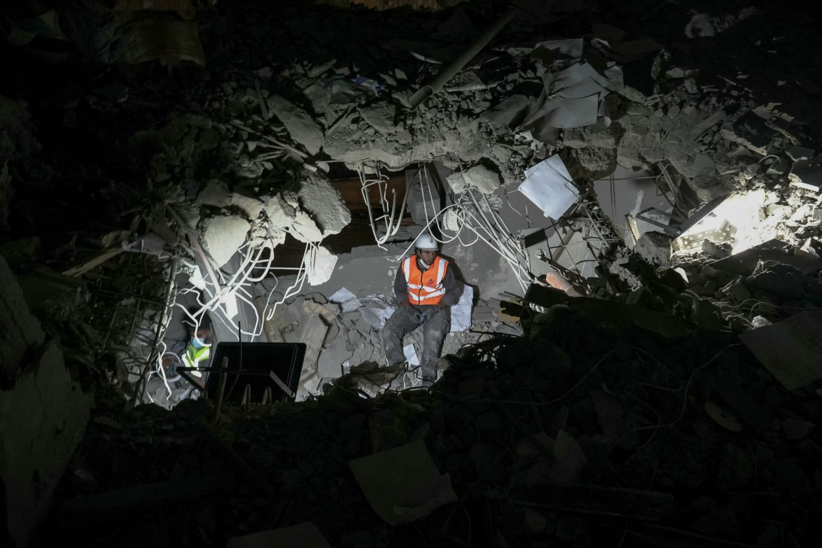Rescatistas buscan supervivientes en el lugar de un ataque aéreo israelí contra un edificio residencial en el barrio de Haret Hreik, en las afueras del sur de Beirut. Foto/AFP