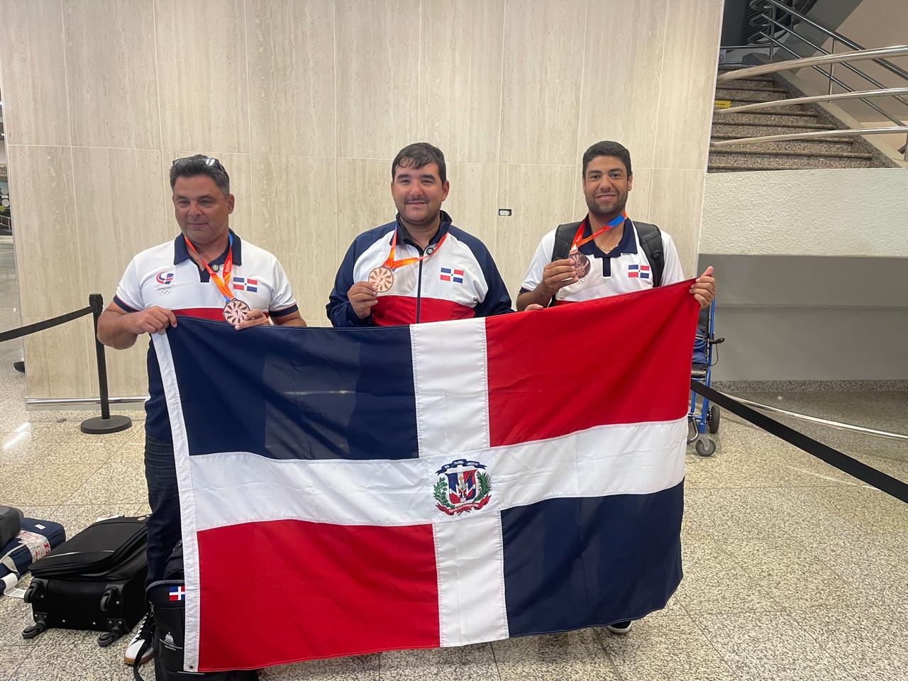 El equipo, que llegó por la terminal del Aeropuerto Internacional Las Américas José Franciso Peña Gómez a las 10:25 de la noche por la línea aerea Copa, estuvo conformado por Julio Elisardo Dujarric, Máximo Tavárez y Stefano Hazoury, quienes llegaron al país acompañados por José Mera, presidente de la Federación Dominicana de Tiro al Plato y tesorero del Comité Olímpico Dominicano.