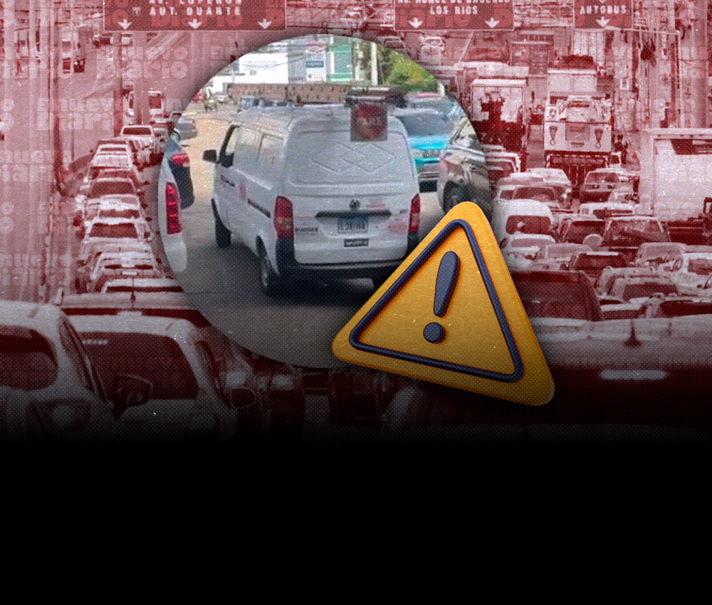Al final del clip, la furgoneta logra, por la acera, adelantar la fila de autos para reincorporarse a la calle.