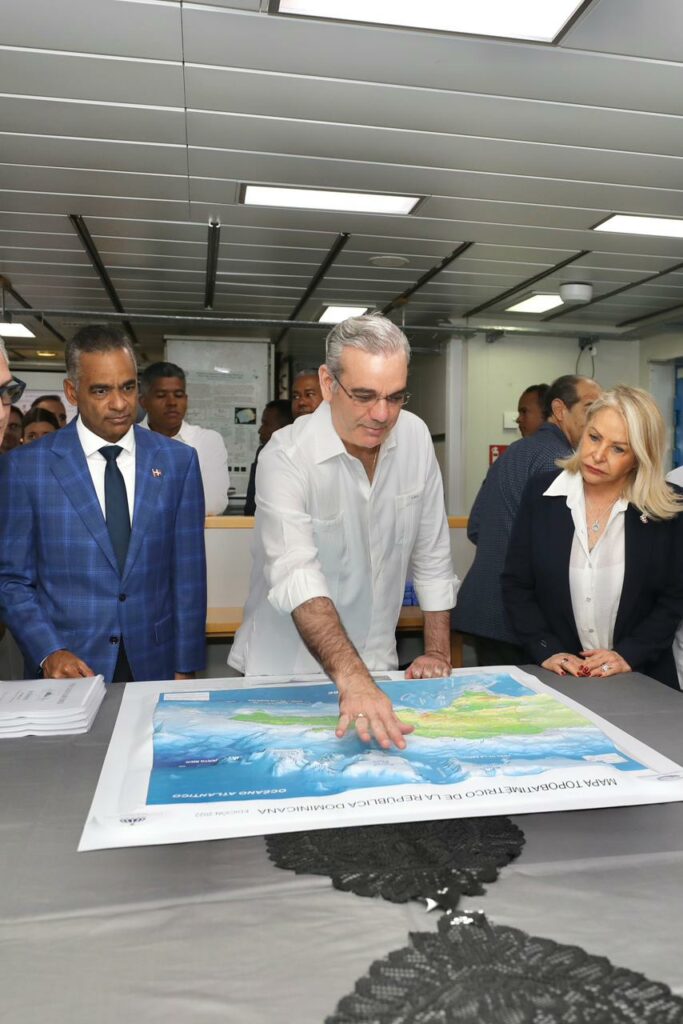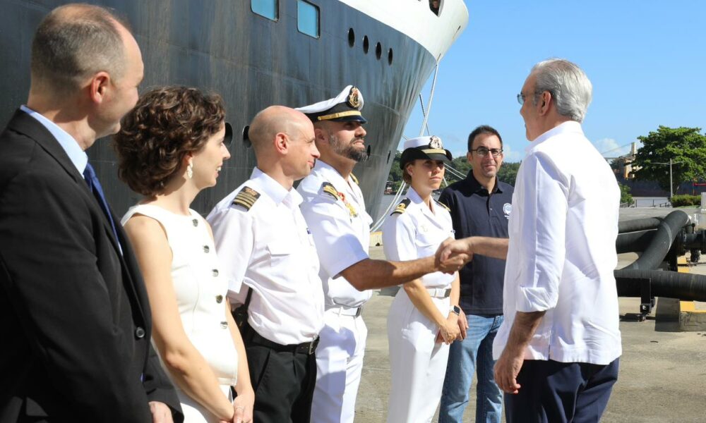 Santo Domingo.- El presidente Luis Abinader visitó este martes el buque oceanográfico RRS James Cook en el Puerto de Santo Domingo, una de las embarcaciones científicas más avanzadas del mundo para la investigación marina profunda y que participa en el proyecto GEOMARHIS, orientado a fortalecer la gestión y protección de los recursos marinos del país.