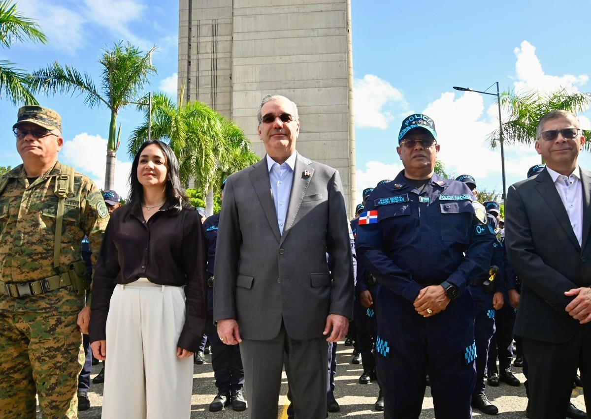 Presidente Luis Abinader, junto a la ministra de Interior y Policía, Faride Raful y demás autoridades de la PN. (Foto: Félix Lara)