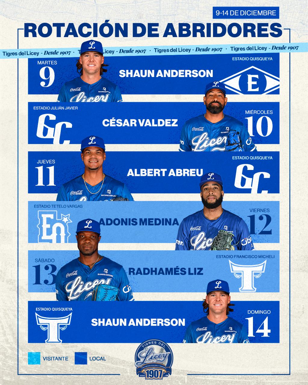 EL NUEVO DIARIO, SANTO DOMINGO.- Los Tigres del Licey anunciaron su rotación abridora para los partidos de esta semana en el campeonato de béisbol otoño-invernal 2025-26.