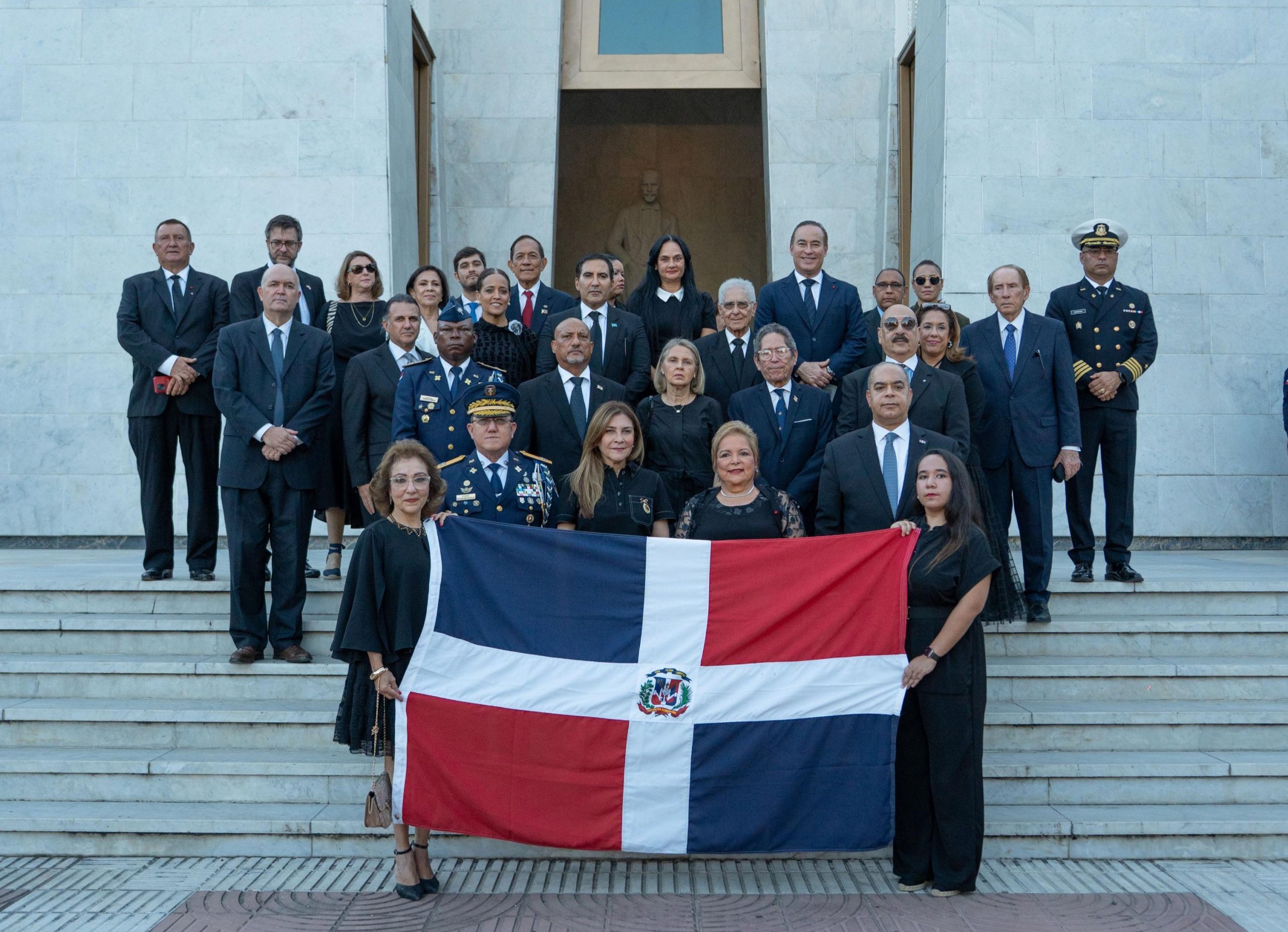 La jornada de celebración inició con la tradicional ofrenda floral en el Altar de la Patria, donde la decana Rodríguez de Cruz rindió tributo a los forjadores de la República Dominicana, junto a una comitiva de la entidad.