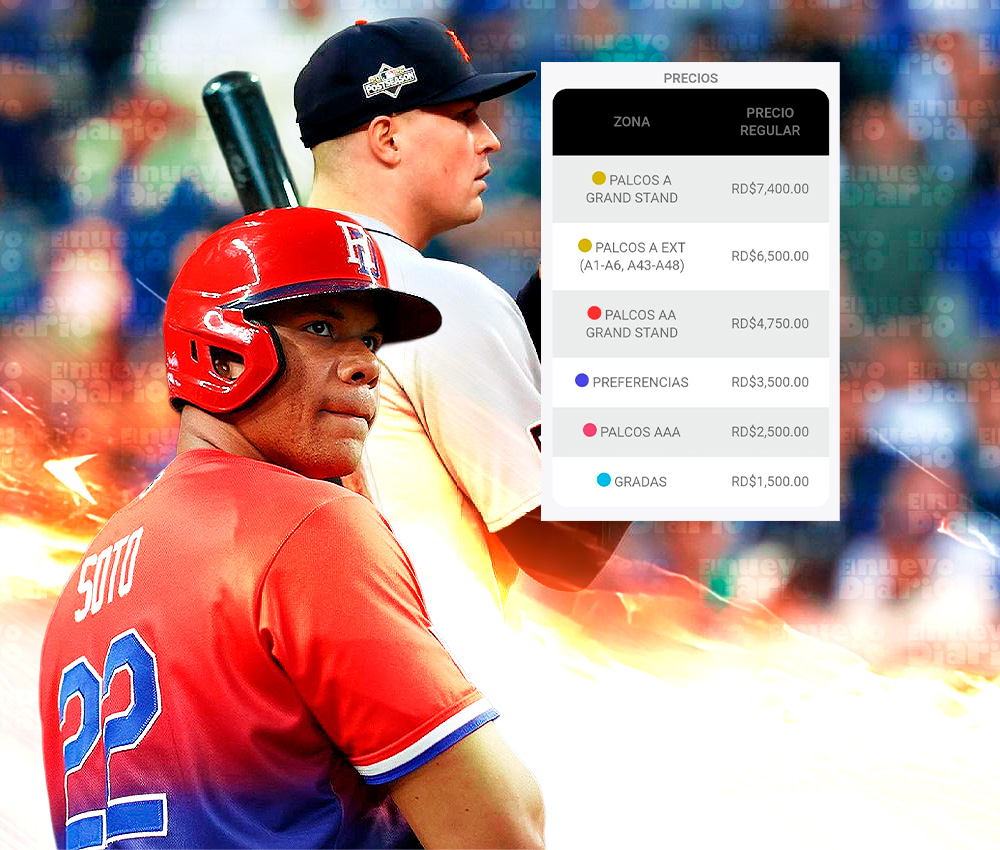 EL NUEVO DIARIO, SANTO DOMINGO.- Los precios de las boletas para la serie de dos partidos entre la Selección Nacional de la República Dominicana y los Tigres de Detroit ya fueron anunciados de manera oficial. Las entradas tendrán un costo de RD$7,400.00 en Palcos A Grand Stand, RD$6,500.00 en Palcos A Ext. (A1–A6 y A 43–A 48), RD$4,750.00 en Palcos AA Grand Stand, RD$3,500.00 en Preferencias, RD$2,500.00 en Palcos AAA y RD$1,500.00 en Gradas. Estos precios no incluyen cargos por servicio.