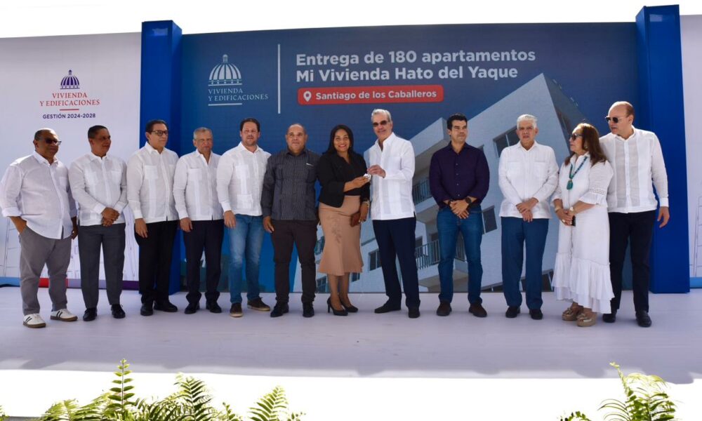 Hato del Yaque, Santiago.– Como parte de las políticas públicas orientadas a reducir el déficit habitacional, dignificar la vida de las familias vulnerables y fortalecer el sistema educativo, el presidente Luis Abinader entregó este sábado 180 apartamentos del Plan Mi Vivienda, que beneficiarán a igual número de familias, y dejó inaugurada la Escuela Básica Hato del Yaque, impactando de manera directa a más de 650 estudiantes de este distrito municipal.