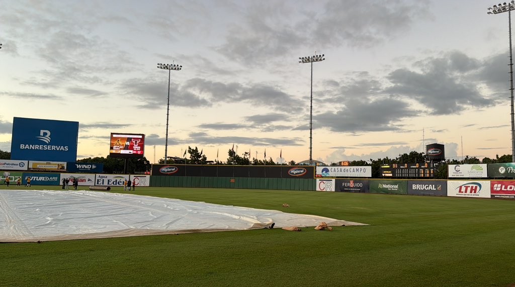 A las 7 de la noche la Liga Dominicana de Béisbol hizo el anuncio en sus redes sociales que por razones de la lluvia y del terreno el partido no se podría jugar.