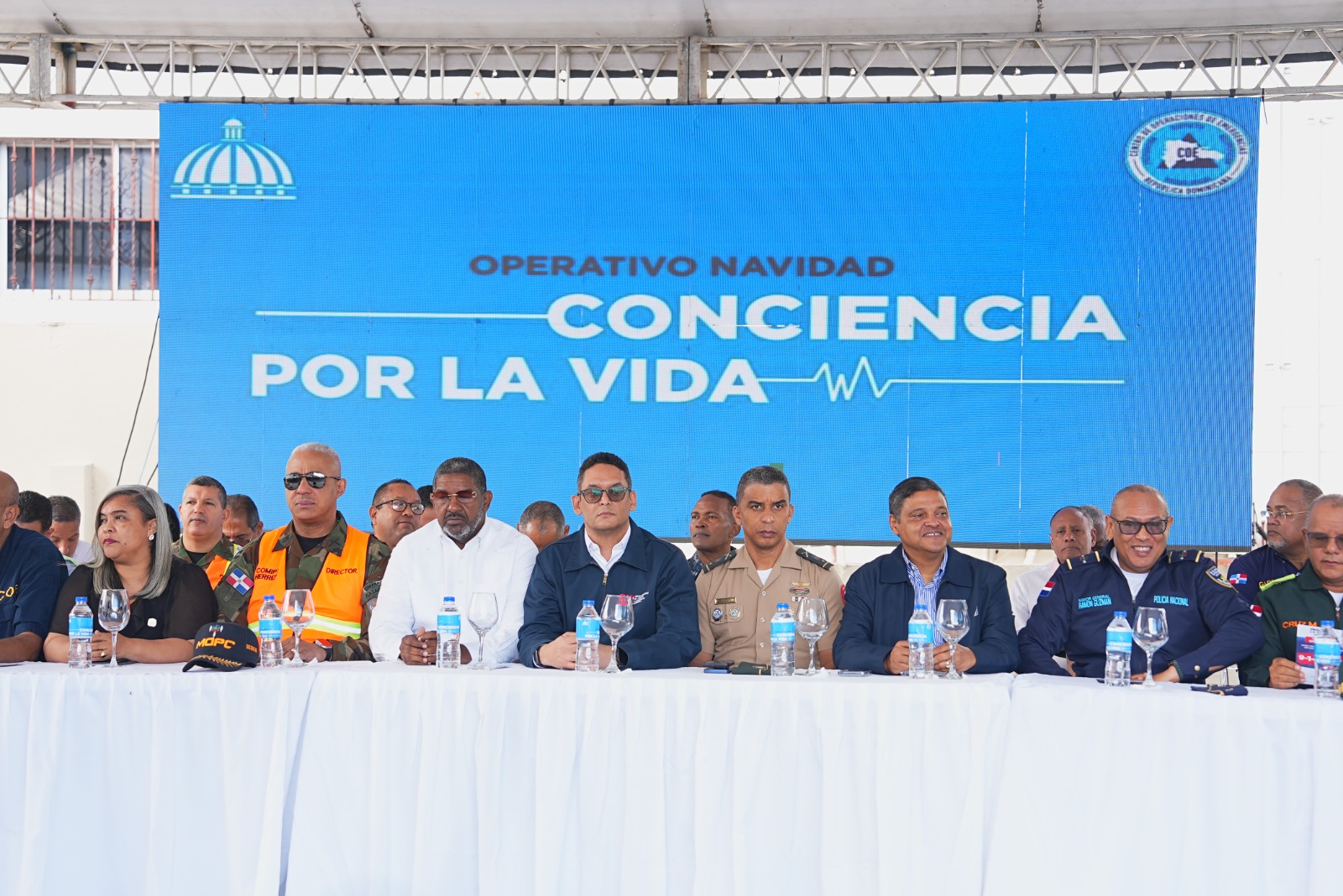 Autoridades en rueda de prensa de operativo ¨Conciencia por la vida¨. Foto: COEEl organismo de emergencia anunció que dispuso 250 ambulancias, 14 equipos de extracción vehicular, 44 unidades de rescate vehicular, 21 talleres móviles, 2 centros de atención prehospitalaria y 3 helicópteros que fueron dispuestos por el ministro de Defensa, teniente general Carlos Antonio Fernández Onofre, E.R.D.