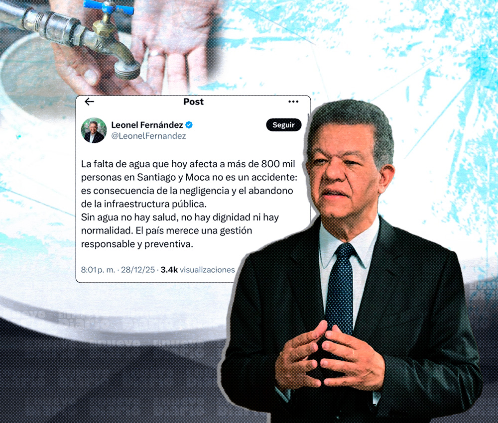EL NUEVO DIARIO, SANTO DOMINGO.- El expresidente de la República y líder de la Fuerza del Pueblo, Leonel Fernández, criticó la gestión gubernamental frente a la crisis del agua que afecta a más de 800 mil personas en Santiago y Moca, a raíz de la avería registrada en la tubería de aducción del acueducto Cibao Central, actualmente intervenida por la Corporación del Acueducto y Alcantarillado de Santiago (Coraasan) y el Instituto Nacional de Aguas Potables y Alcantarillados (Inapa).