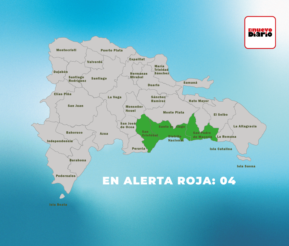 Las provincias bajo alerta verde son San Cristóbal, San Pedro de Macorís, Santo Domingo y el Distrito Nacional.