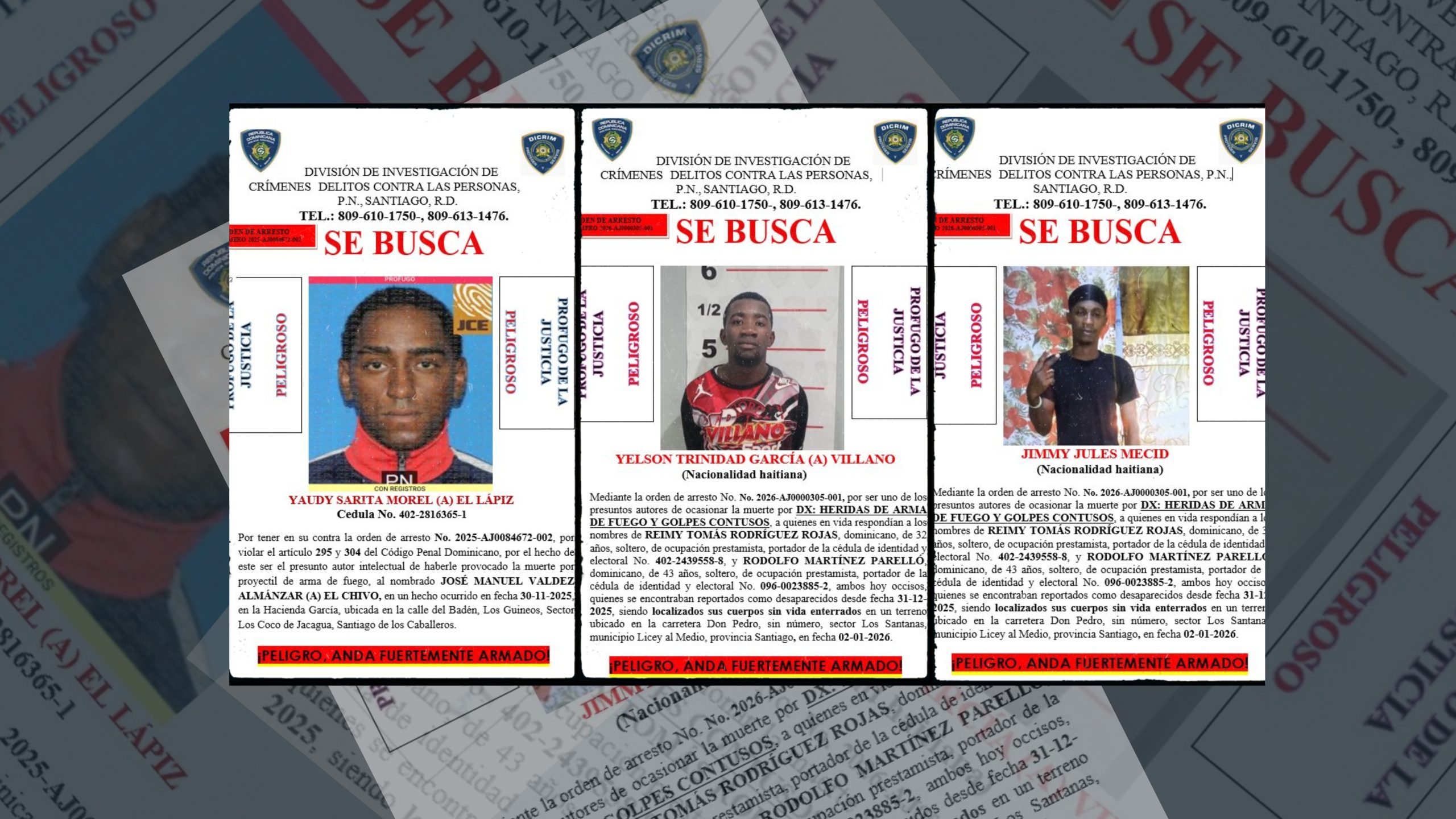 Los buscados fueron identificados como Yelson Trinidad García (alias “Villano”), Yaudy Sarita Morel (alias “El Lápiz”) y Jimmy Jules Mecido.