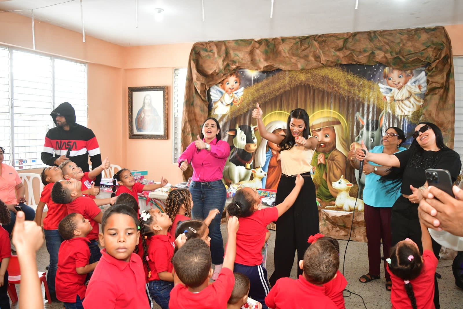 ​La tarde cobró un brillo especial con una invitada de lujo: la ex Miss República Dominicana, Celinee Santos. La reina de belleza se unió a Karilyn para compartir de cerca con las familias, demostrando que la verdadera esencia de estas fechas reside en la solidaridad y en el tiempo de calidad que se le brinda a la niñez dominicana.
