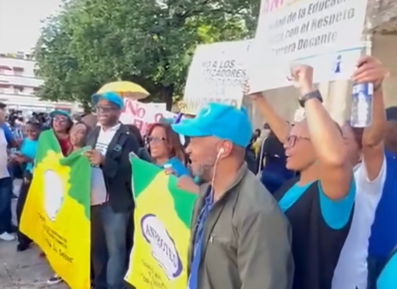 La manifestación organizada por la Corriente Magisterial Juan Pablo Duarte y el Frente Universitario Renovador (FUR), se lleva cabo desde las 4:00 de la tarde en el parque Independencia. Cuenta con la participación de miembros de la Asociación Dominicana de Profesores (ADP) y el Observatorio Dominicano de Políticas Públicas de la UASD (ODPP-UASD), entre otros.