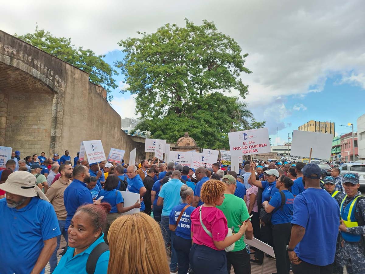 Santo Domingo- Bajo un fuerte despliegue policial y al grito de consignas cientos de maestros del Gran Santo Domingo se concentraron este jueves en el Parque Independencia, Distrito Nacional, en una manifestación encabezada por la Asociación Dominicana de Profesores (ADP).