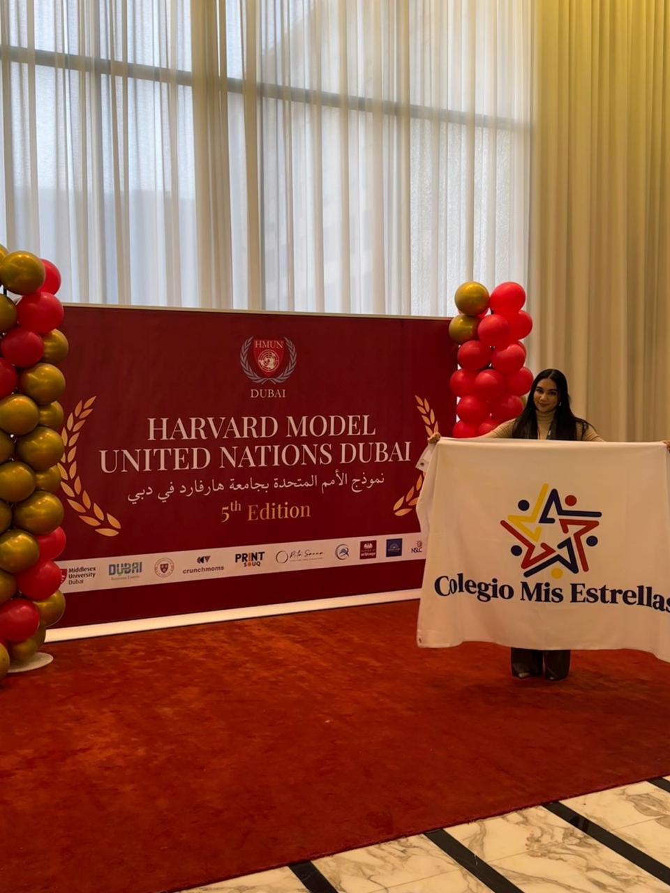 Alexa ha sido seleccionada para representar al Colegio Mis Estrellas y a la República Dominicana en el Harvard Model United Nations Dubai, uno de los foros académicos juveniles más prestigiosos del mundo, que reúne a estudiantes de distintos países para debatir los grandes temas de la agenda internacional, fomentando el liderazgo, la diplomacia y la conciencia global.