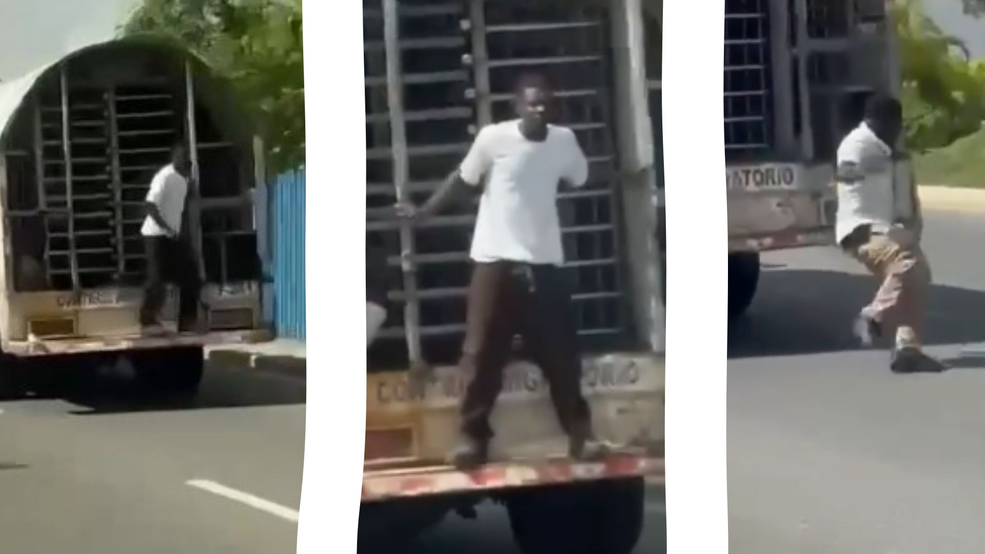Santo Domingo.- Dos ciudadanos haitianos fueron captados en video en el momento en que se lanzan de un camión en marcha de la Dirección General de Migración, en Santo Domingo Norte.