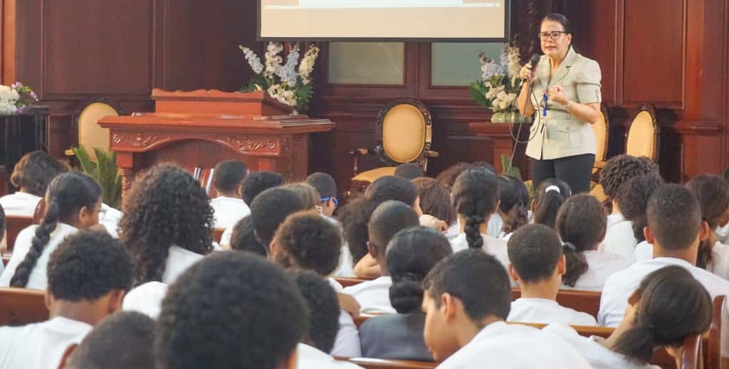 La fiscal Thania Valentín instó a los estudiantes a ser agentes de cambio, promoviendo la prudencia y el respeto en las calles. Enfatizaron la importancia de respetar los límites de velocidad, tal como lo indica el Artículo 264 de la Ley 63-17, que exige a los conductores ajustar su velocidad a las condiciones de la vía y el entorno, especialmente en zonas escolares y áreas de poca visibilidad.