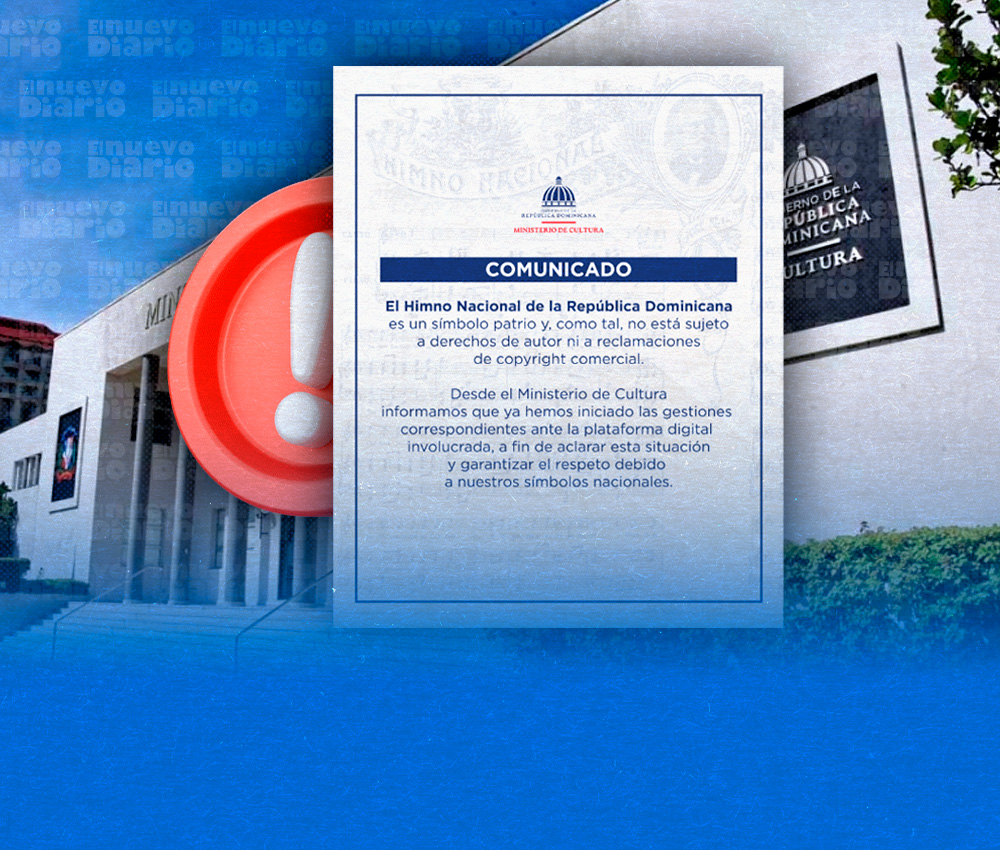 EL NUEVO DIARIO, SANTO DOMINGO.– El Ministerio de Cultura emitió un comunicado para aclarar que el Himno Nacional de la República Dominicana no está sujeto a derechos de autor ni a reclamaciones de copyright comercial, luego de que saliera a la luz un informe que advierte sobre un presunto uso irregular del símbolo patrio en plataformas digitales.