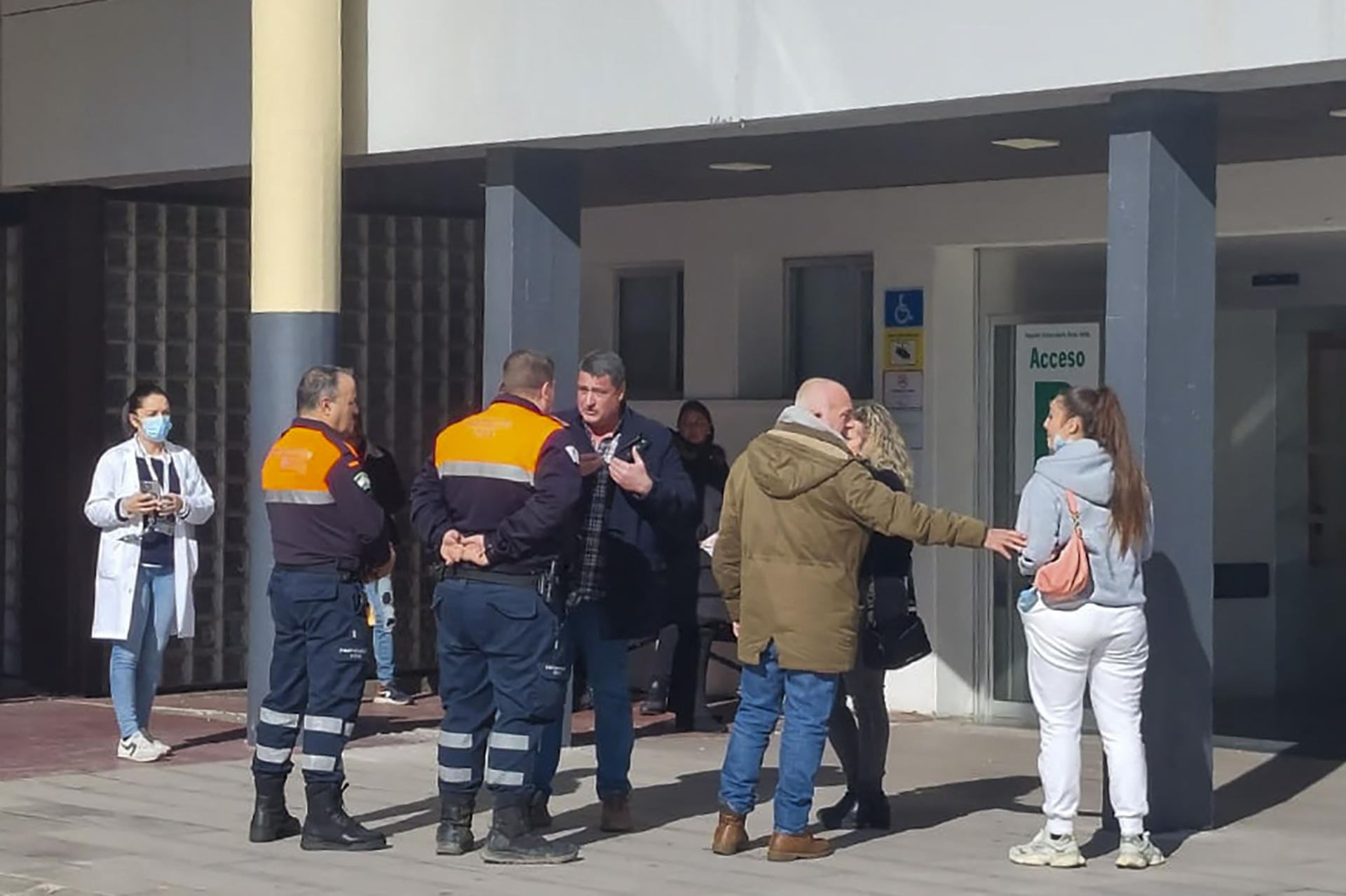 Familiares de afectados por el accidente de trenes a su llegada al Hospital Infanta Sofía en Córdoba, este lunes. EFE/Lucía Ruíz Simón