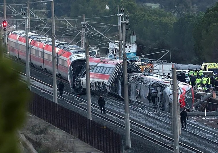 En la tarde del domingo, un tren de la compañía Iryo, de origen italiano, que había salido de Málaga (sur) con destino a Madrid con 317 personas a bordo, descarriló sus tres últimos vagones e invadió la vía contigua por la que en ese momento circulaba otro convoy de Renfe, la compañía española, que iba con destino a Huelva (sur), y que también descarriló.