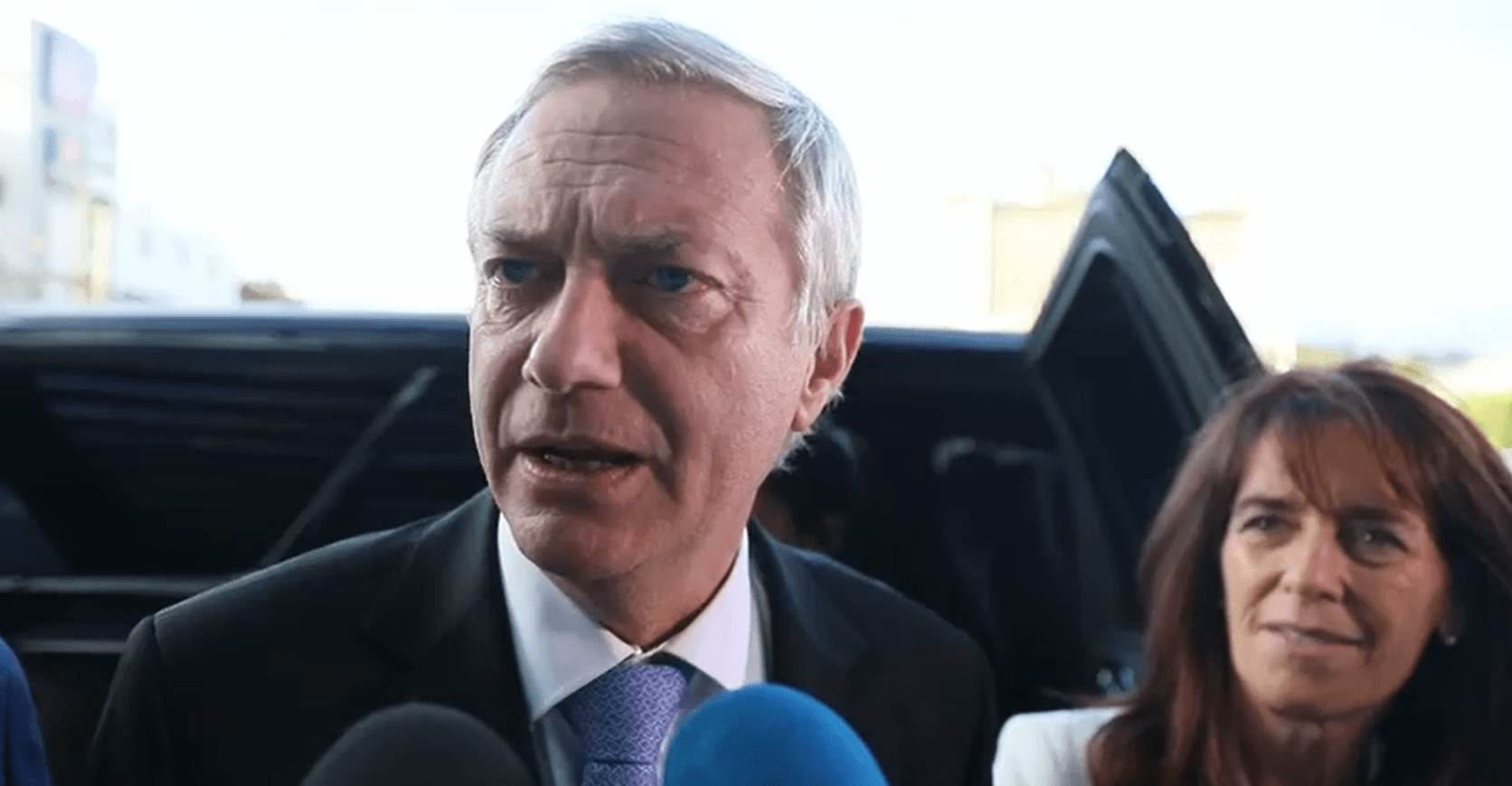 El mandatario electo arribó acompañado de su esposa, María Pía Adriasola, y fue recibido por altas autoridades dominicanas, entre ellas el ministro de Relaciones Exteriores, Roberto Álvarez; el ministro de Defensa, teniente general Carlos Antonio Fernández Onofre; y el ministro de Vivienda y Edificaciones, Víctor Ito Bisonó, quienes encabezaron el acto de bienvenida y coordinan la agenda oficial.