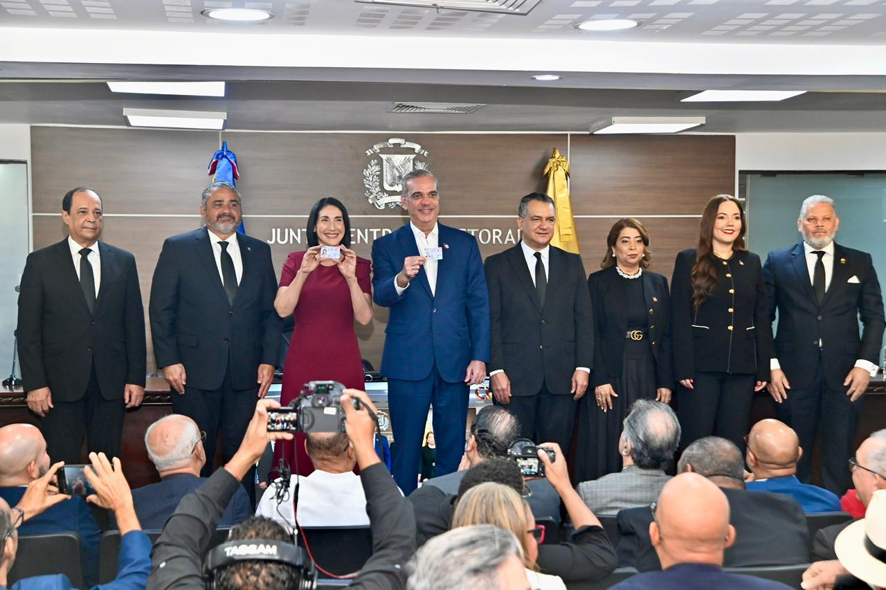 Abinader recibe primera cédula y bromea: “Hay un cambio aquí, en la otra decía soltero y ahora casado”.- (Félix Lara/END).-