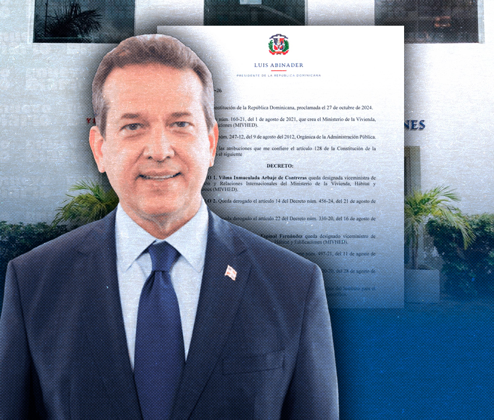 A través del referido decreto, el mandatario también designó a Vilma Inmaculada Arbaje de Contreras como viceministra de Cooperación y Relaciones Internacionales del Mived y dejó sin efecto el artículo 14 del Decreto núm. 456-24 del 21 de agosto de 2024, así como el artículo 22 del Decreto núm. 330-20 del 16 de agosto de 2020.