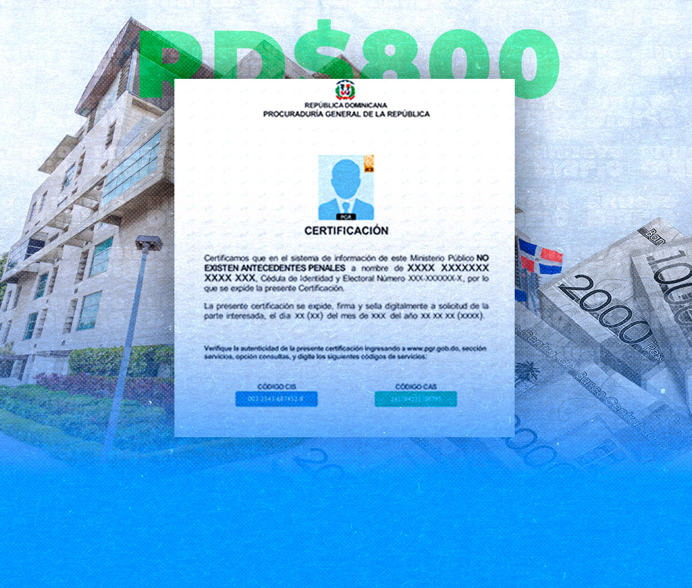 EL NUEVO DIARIO, SANTO DOMINGO.- La Procuraduría General de la República (PGR) aumentó el costo del certificado de buena conducta o de no antecedentes penales de RD$600 a RD$800, según se verifica en el portal de servicios en línea de la institución.