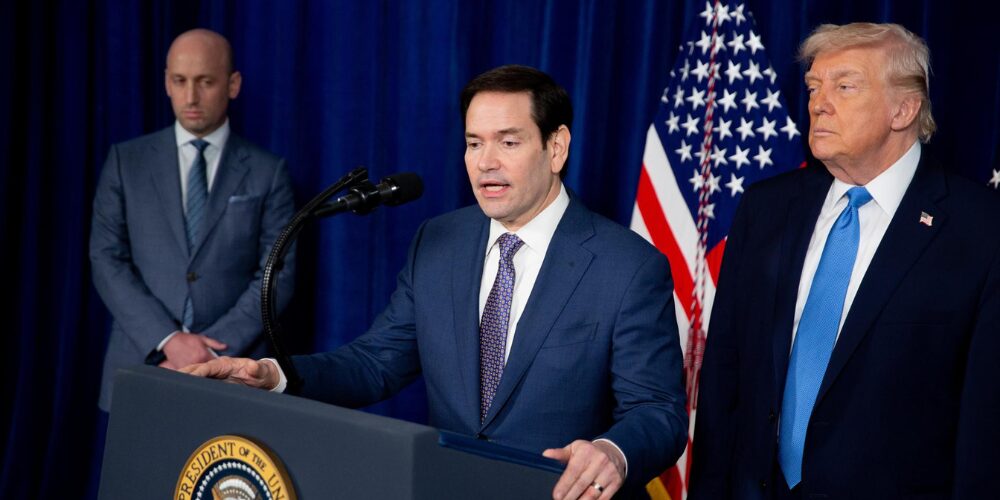 El secretario de Estado de EE.UU., Marco Rubio (C). EFE/EPA/NICOLE COMBEAU / POOL.