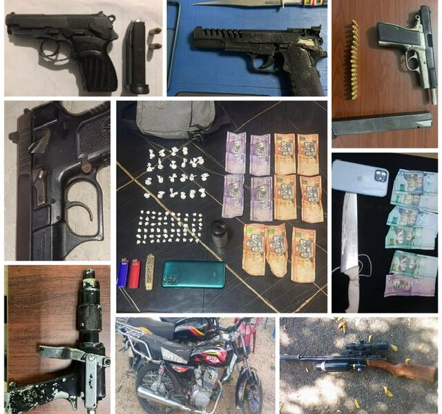Las acciones, encabezadas por la Dirección Central de Investigación (DICRIM) junto a la Policía Preventiva, permitieron la incautación de cuatro armas de fuego ilegales, armas blancas, armas de imitación, porciones de sustancias controladas, dinero en efectivo, teléfonos celulares y una motocicleta con reporte de robo, evidenciando el alcance de las operaciones.