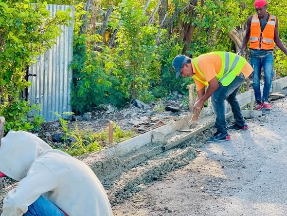 Trabajos de construcción de aceras y contenes en municipio Postrer Río.