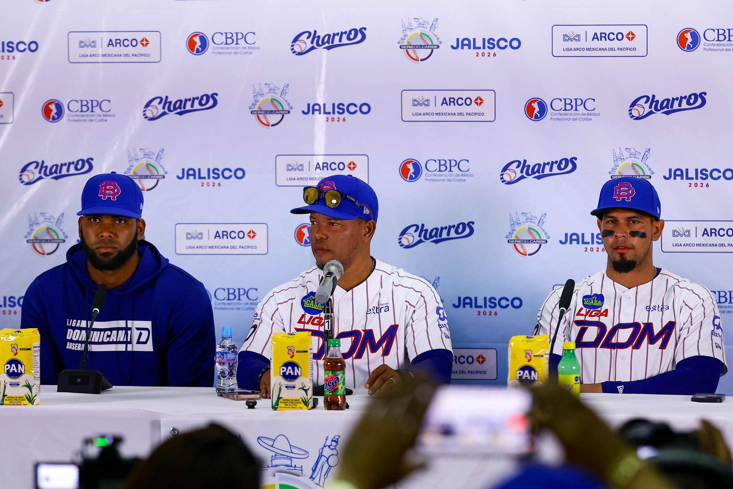 Franchy Cordero, Ramón Santiago y Marco Hernández en rueda de prensa de la Serie del Caribe.