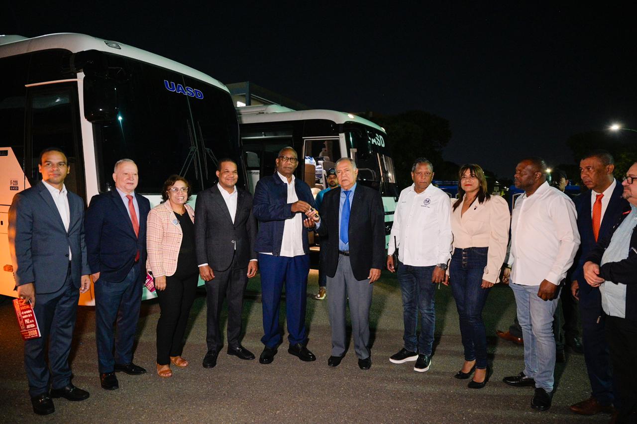 EL NUEVO DIARIO, SANTO DOMINGO. – El rector de la Universidad Autónoma de Santo Domingo (UASD), Editrudis Beltrán, encabezó el jueves el acto de entrega de autobuses y vehículos en la Sede Central como parte de las acciones orientadas a fortalecer la movilidad, la seguridad y el bienestar de la comunidad universitaria, en el marco del proceso de modernización institucional que impulsa la actual gestión académica.
