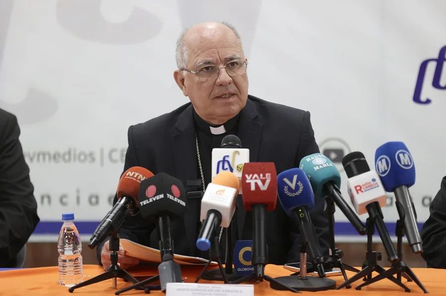 El presidente de la Conferencia Episcopal de Venezuela (CEV), monseñor Jesús González de Zárate, habla en una rueda de prensa, este 9 de febrero de 2026, en Caracas (Venezuela). EFE/ Ronald Peña R.