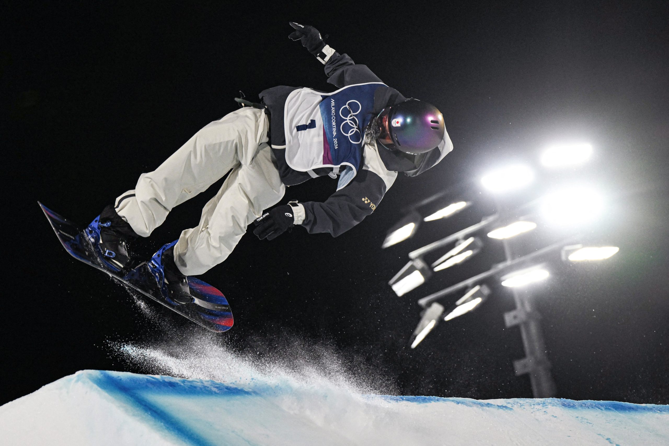 Japan’s Kokomo Murase competes in the snowboard women’s big air final run 1 during the Milano Cortina 2026 Winter Olympic Games at Livigno Snow Park, in Livigno (Valtellina), on February 9, 2026. (Photo by Jeff PACHOUD / AFP)