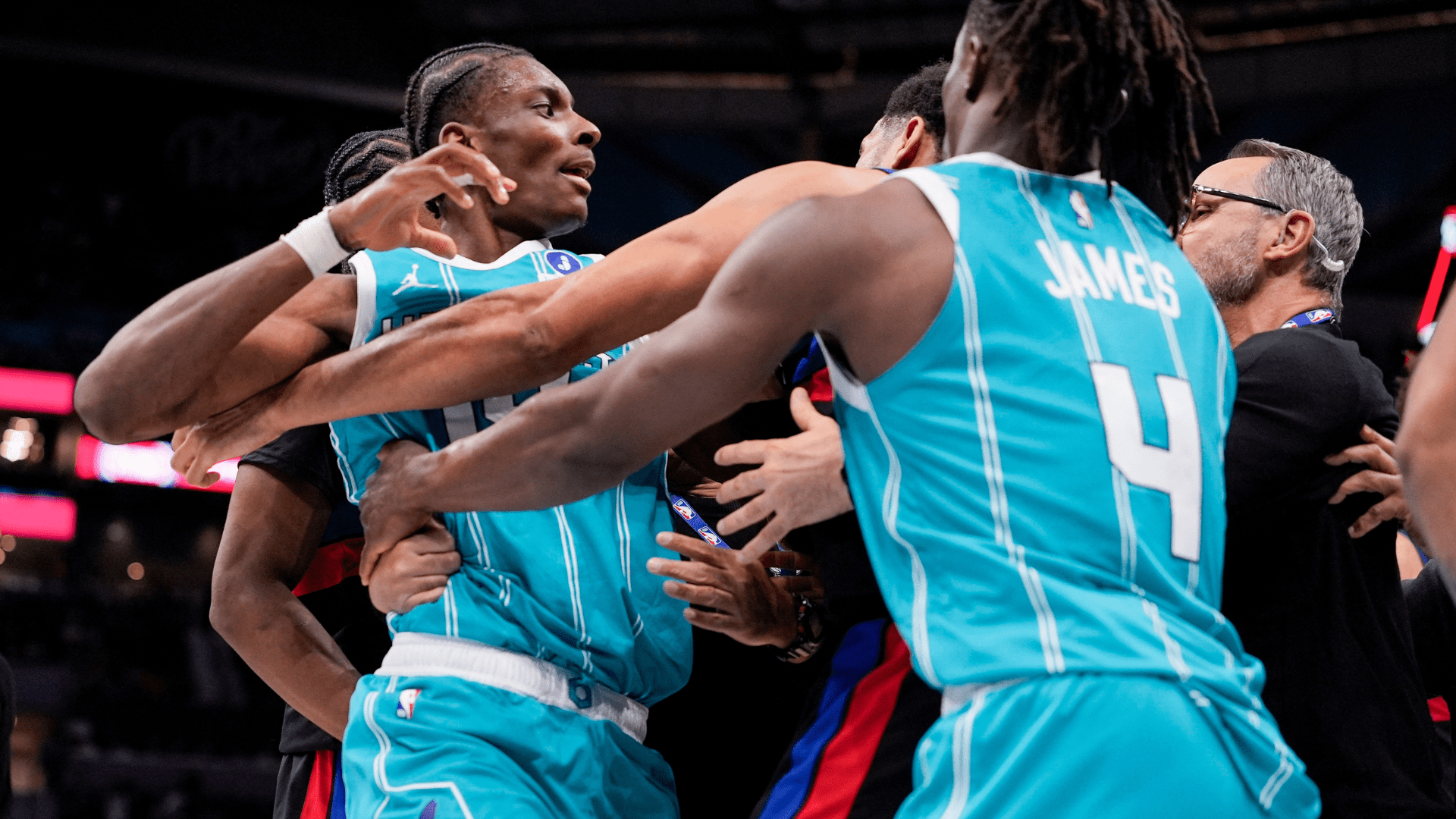 Detroit ganaba 88-99 en ese momento, cuando el Spectrum Center de Charlotte explotó, enfurecido de ira por las decisiones arbitrales.