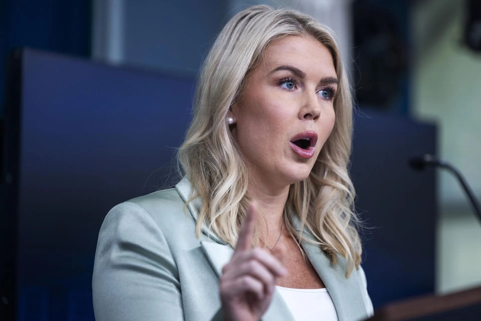 La secretaria de prensa de la Casa Blanca, Karoline Leavitt. EFE/EPA/JIM LO SCALZO.