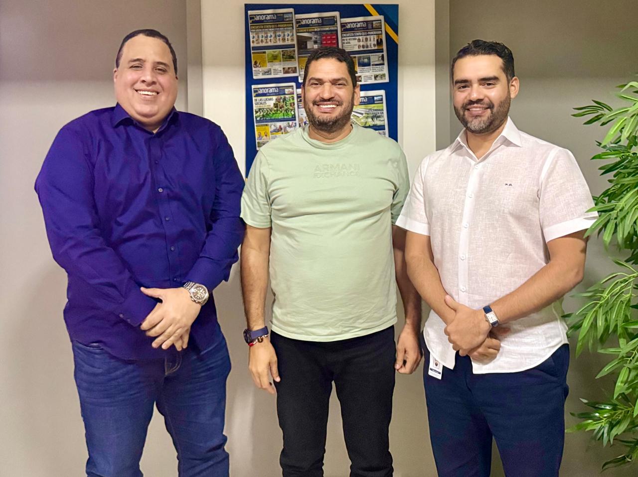 Virgilio Rojo y Rafael Almánzar, directivos de Adcio Media, junto al director de Medios Panorama, Miguel Medina (Foto: fuente externa)