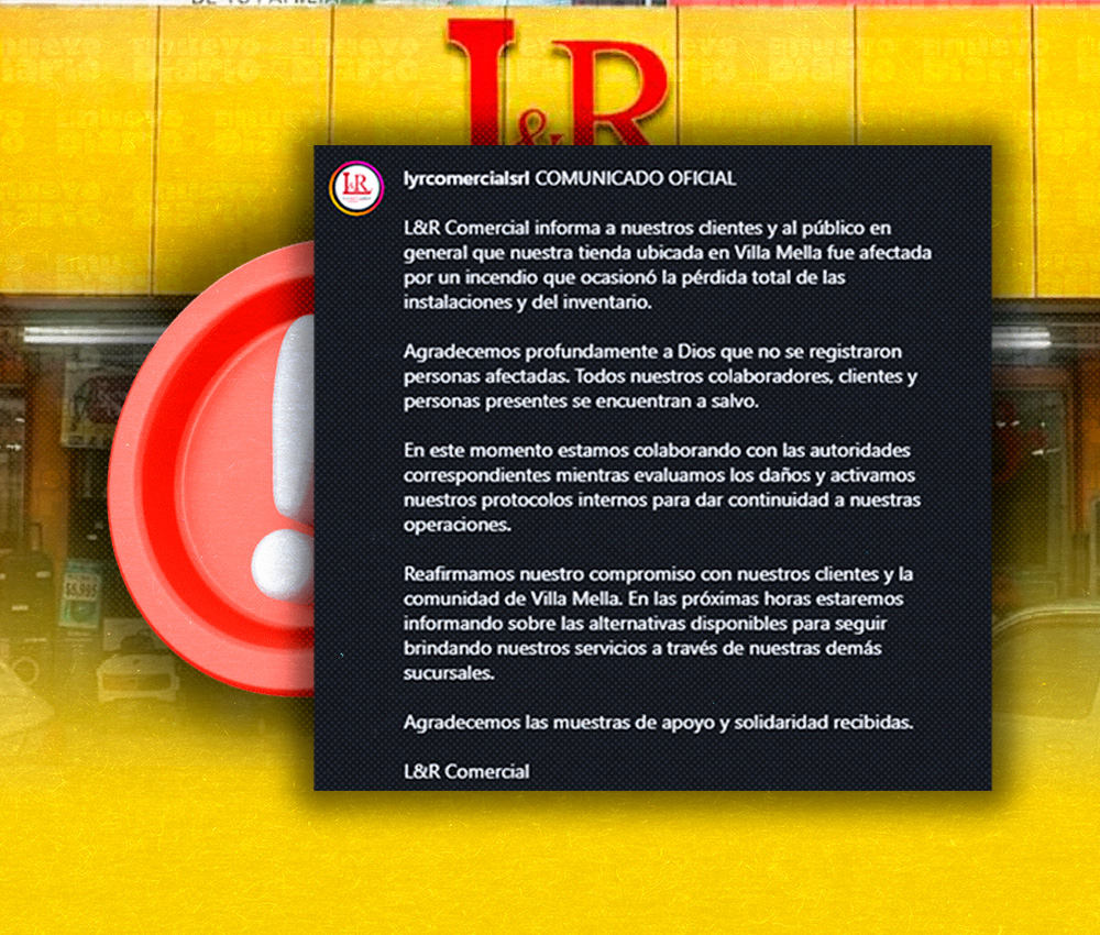 L&R Comercial indicó que en estos momentos se encuentra colaborando con las autoridades correspondientes, mientras realiza la evaluación de los daños ocasionados y activa sus protocolos internos para dar continuidad a sus operaciones.